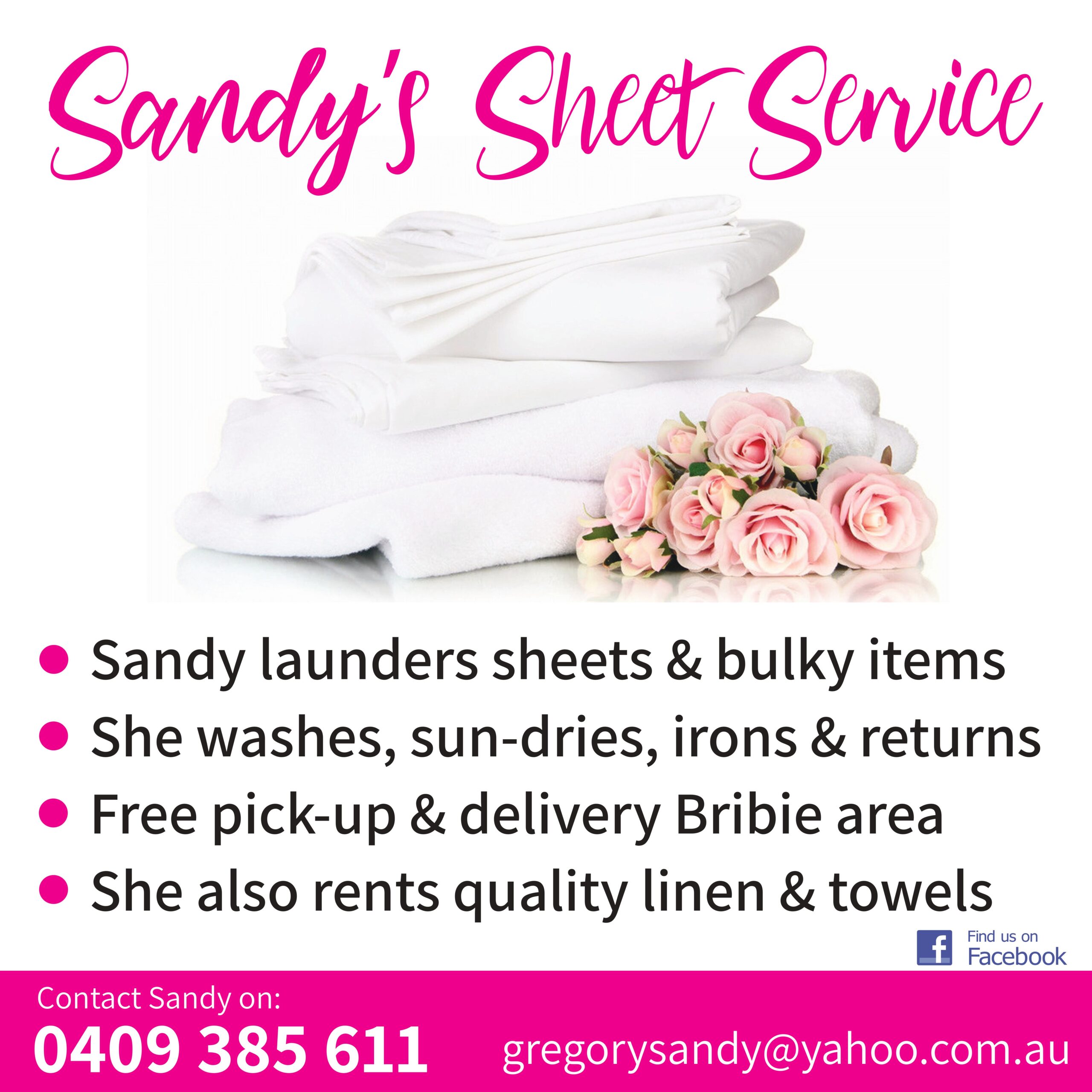 Sandy’s Sheet Service is your answer!!